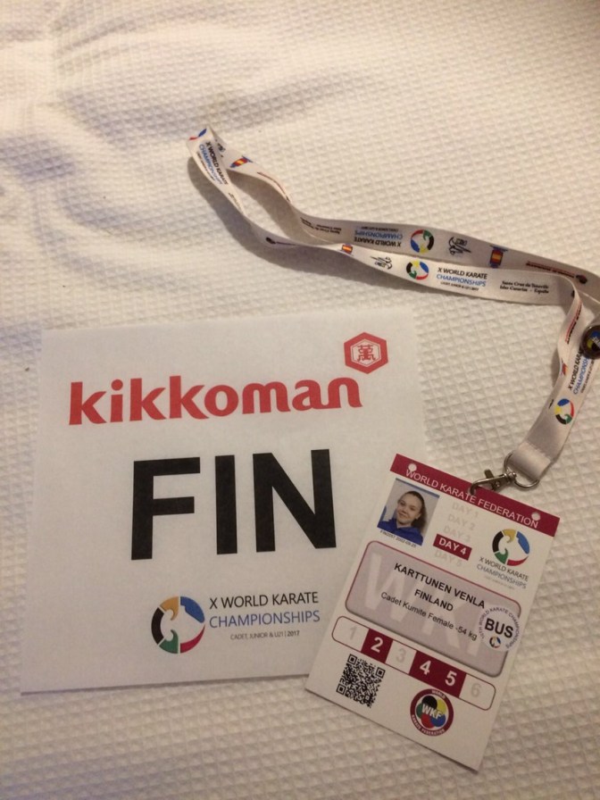 MM-kisat järjestettiin Teneriffalla. Suomesta meitä kilpailijoita lähti vain kolme. Kaksi ottelijaa ja yksi kataaja. MM-kilpailuihin osallistui yli 70 maata ympäri maailmaa. Omassa sarjassani kilpailijoita oli noin 60.